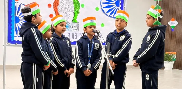 Students from every class joined in - singing patriotic songs, reciting catchy rhymes and showing off awesome crafts like tricolour flags waving high, making banyan trees with tearing and pasting activity and heartfelt greeting cards. The energy was electric as kids celebrated India's diversity and strength with pride and joy.